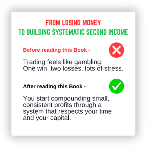 Through this book, he shares everything he learned from trading while working long corporate hours: the mistakes, the mindset shifts, and the system that finally brought him consistent profits without screen addiction.
